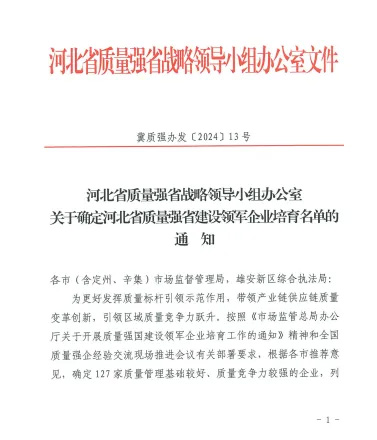 近日,河北省質(zhì)量強(qiáng)省戰(zhàn)略領(lǐng)導(dǎo)小組發(fā)布通知,河北滄海核裝備科技股份有限公司入選河北省質(zhì)量強(qiáng)省建設(shè)領(lǐng)軍企業(yè)培育名單,這也是滄海核裝獲得政府質(zhì)量獎后獲得的又一質(zhì)量建設(shè)領(lǐng)域的榮譽(yù)資質(zhì)。